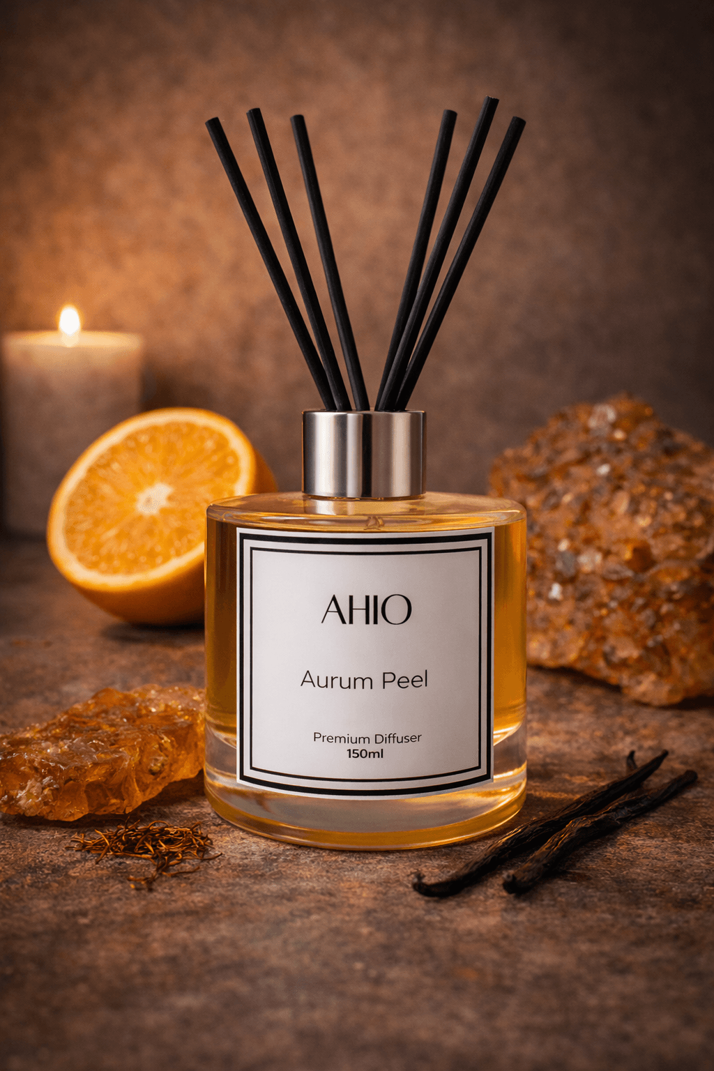Aurum Peel is a warm, radiant fragrance designed to gently elevate your space. Bright notes of orange open the scent with a soft citrus glow, unfolding into the creamy sweetness of vanilla and settling into the rich warmth of amber. The result is a beautifully balanced composition fresh yet comforting, luminous yet grounded.